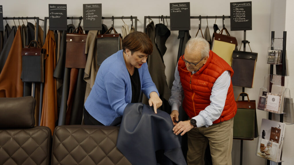 Beeindruckend waren und sind die in den Filialen vorhandenen vielseitigen Bahnen an Bezugsmuster in verschiedensten Lederarten in Spitzenqualität. Auch ein Ersatzakku, der nach 10 Jahren erforderlich wurde, konnte sofort passend geliert werden. Nochmals vielen Dank für die umfassende Betreuung.