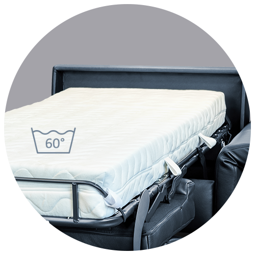 Der Schonbezug der Matratze kann abgezogen und bei 60 Grad in der Waschmaschine gewaschen werden. gewaschen werden.