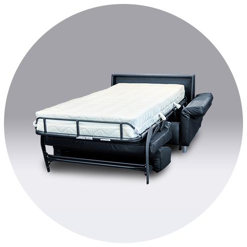 Unsere Schlafsofas und -sessel lassen sich mühelos zum vollwertigen Bett mit Lattenrost und Matratze umwandeln. Machen Sie sich ein Bild davon.