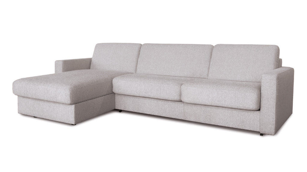 Unser Schlafsofaprogramm ist als einfacher Sessel / einfaches Sofa oder mit Longchair inkl. Staufach verfügbar.