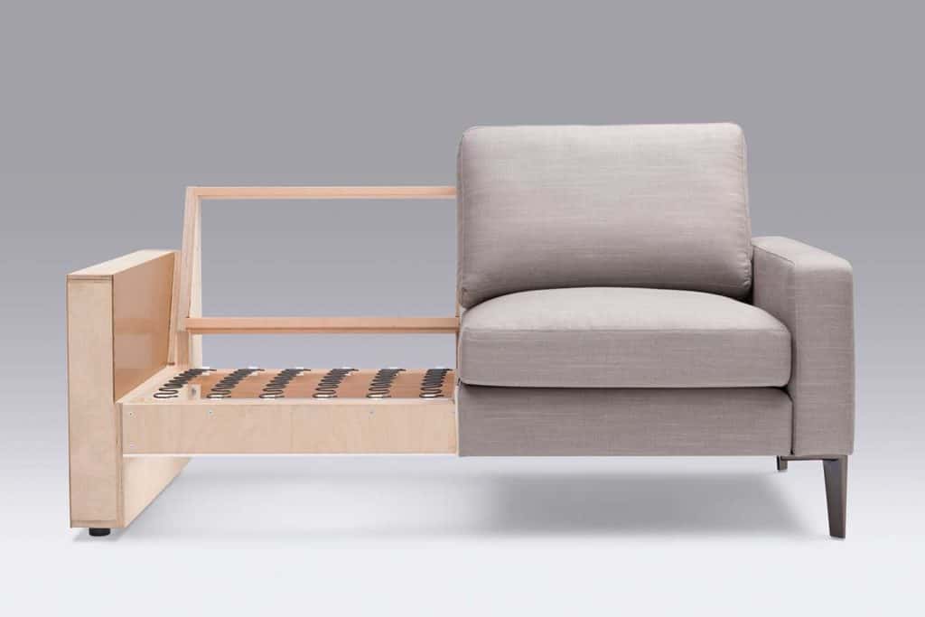 Ihr neues Sofa wird auf Basis eines handgefertigten, massiven Gestells mit Holz aus regionalen Wäldern aufgebaut. Das Grundgestell besteht aus Multiplex-Platten und Buchenholz-Leisten mit 28 mm Zargen.