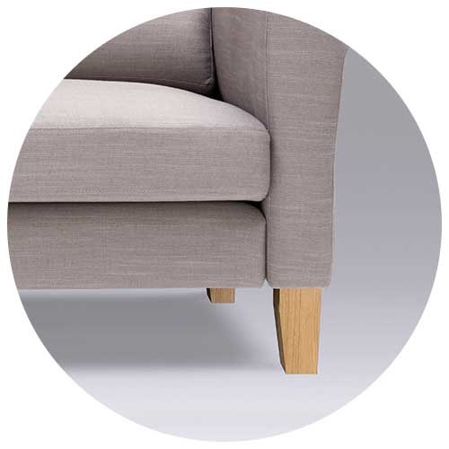 Die Sitzkissen werden von Hand gefertigt. Sie sind in der Mitte weich gepolstert und bieten eine verstärkte Außenkante mit einem 55er Raumgewicht. Sollten Sie mal etwas mehr Sitztiefe benötigen, können Sie so das Kissen leicht nach vorne setzen und damit die Sitztiefe Ihres Sofas anpassen.