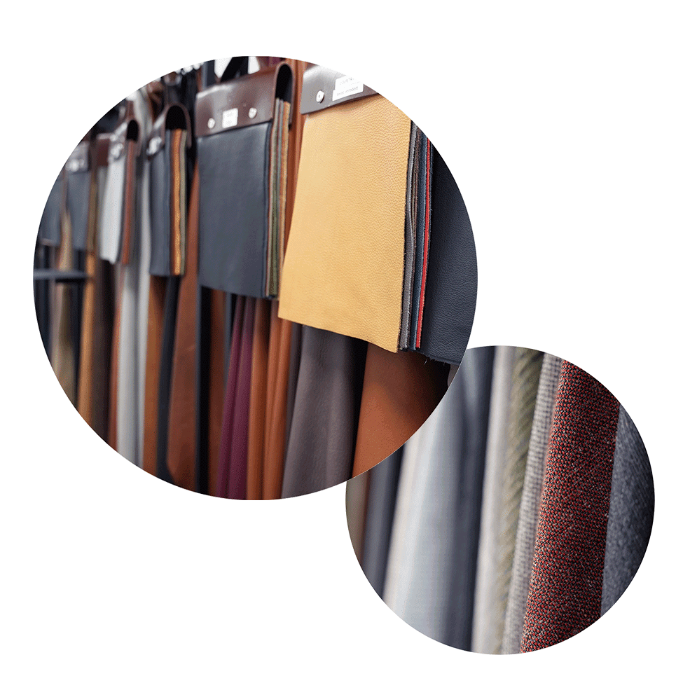 Beste Stoffe & Leder in verschiedenen Farben